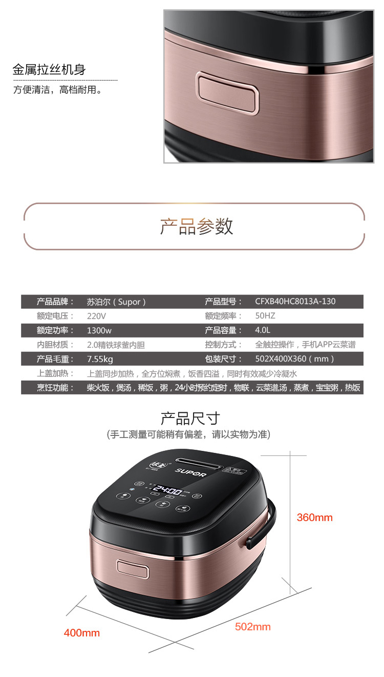 苏泊尔 (SUPOR)电饭煲4L CFXB40HC8013A-130