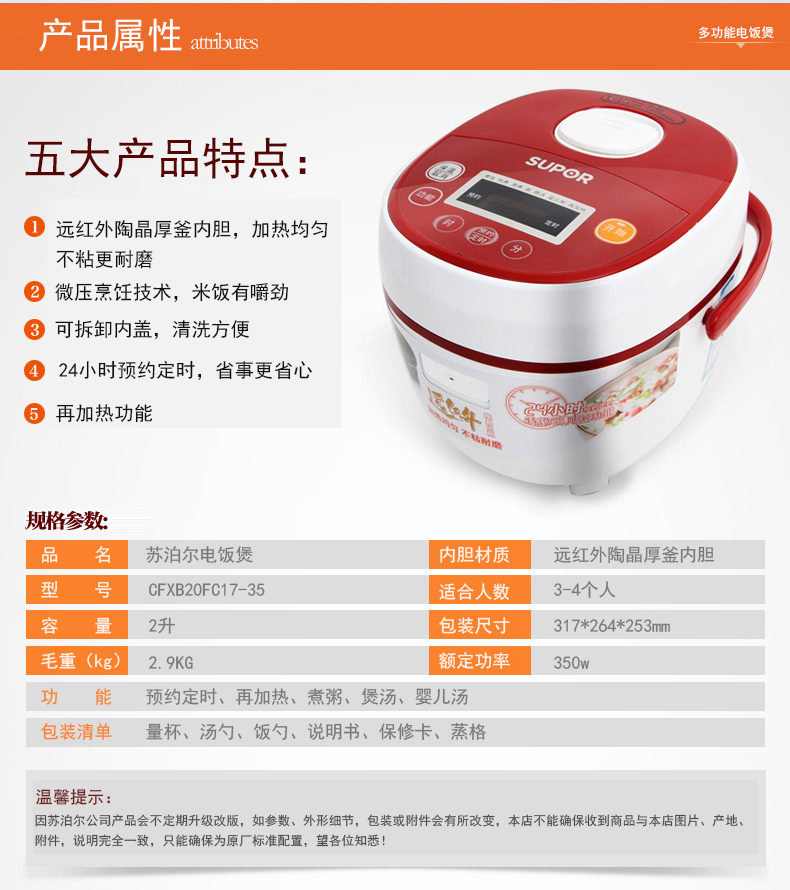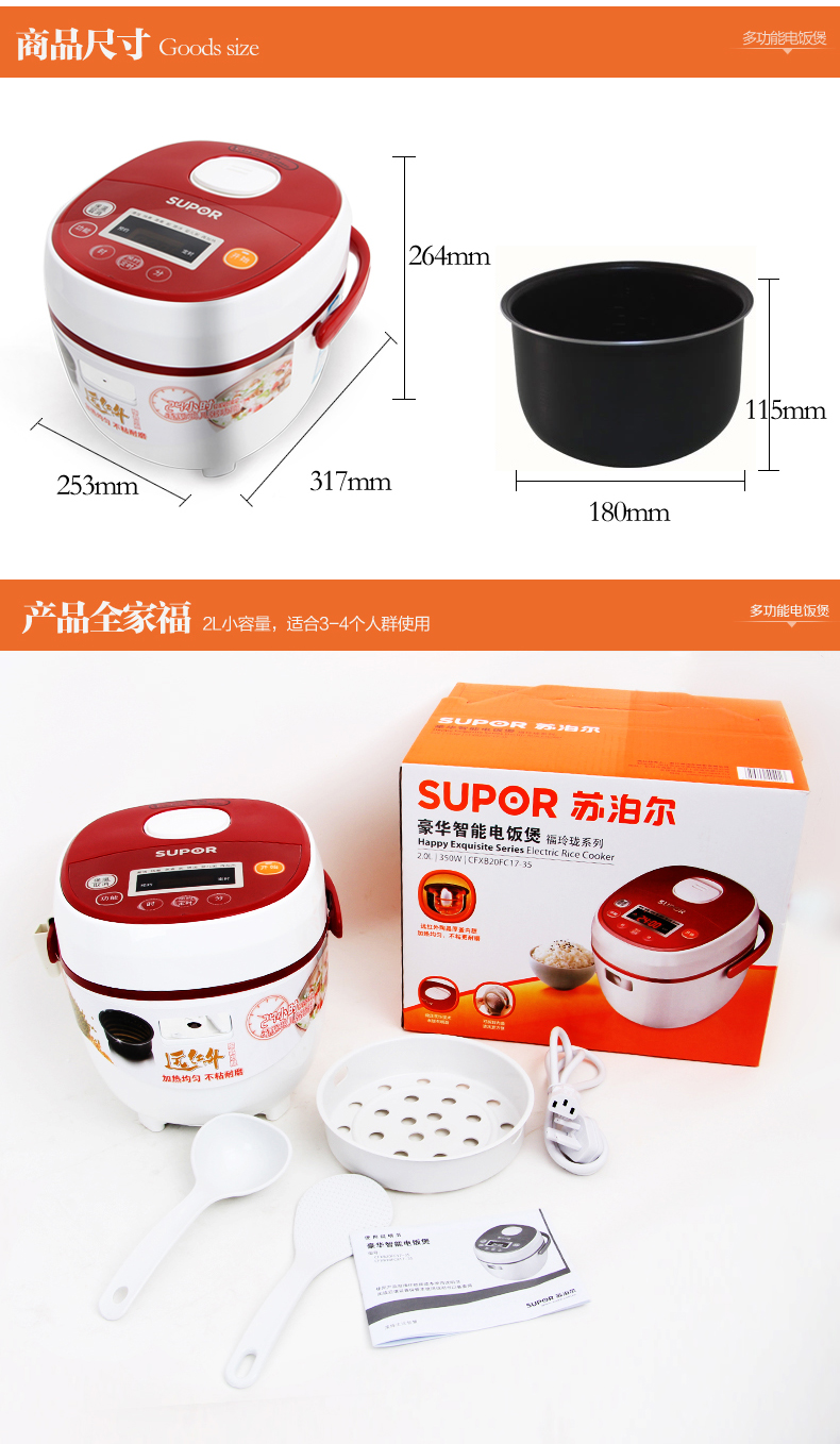 苏泊尔(SUPOR) 电饭煲2L 三口之家
