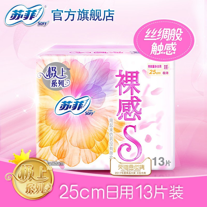 sofy苏菲卫生巾量多日用250mm裸感S极薄棉柔亲肤型 13片