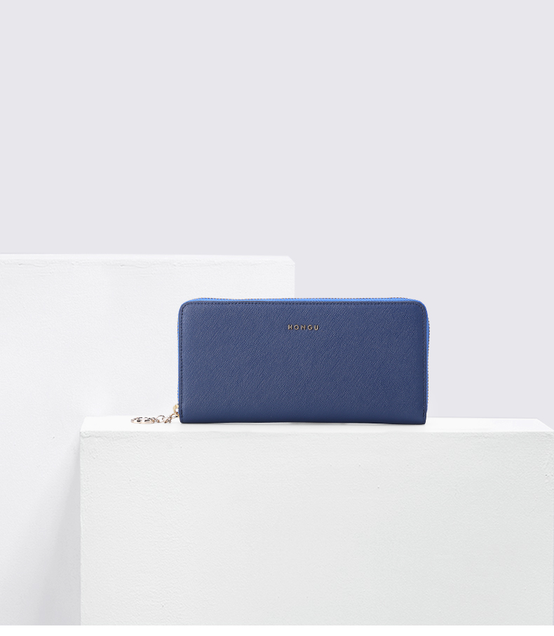 啄木鸟青长款钱包拉链