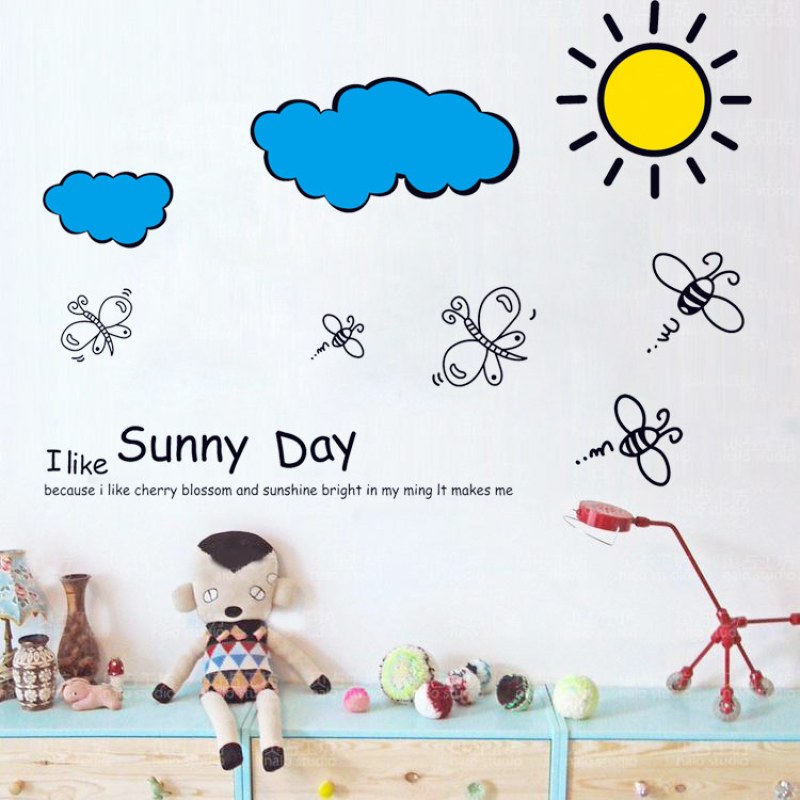 罗素卡通天空云朵儿童房装饰可移除墙贴 大
