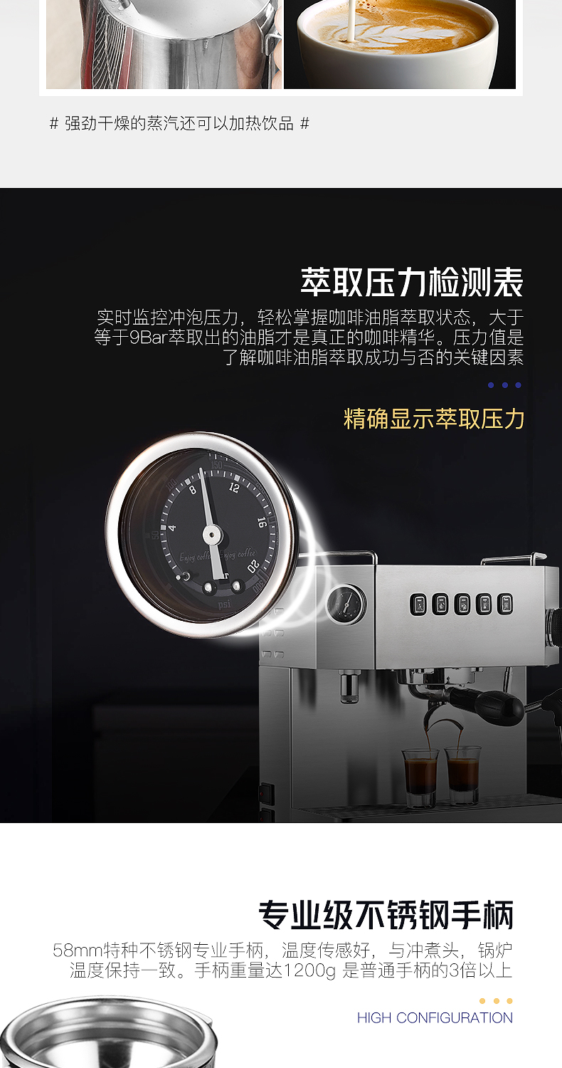 格米莱 CRM3018意式专业半自动家用商用咖啡机