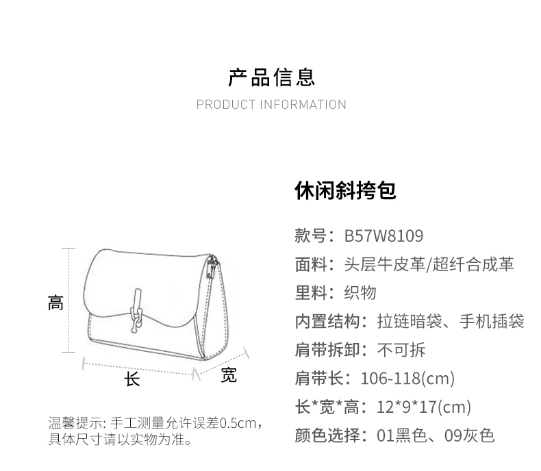 热风牛皮拉链斜挎包