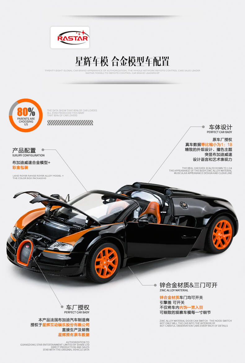 布加迪威速合金仿真男孩玩具车静态车 x1