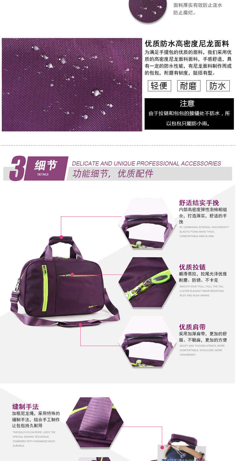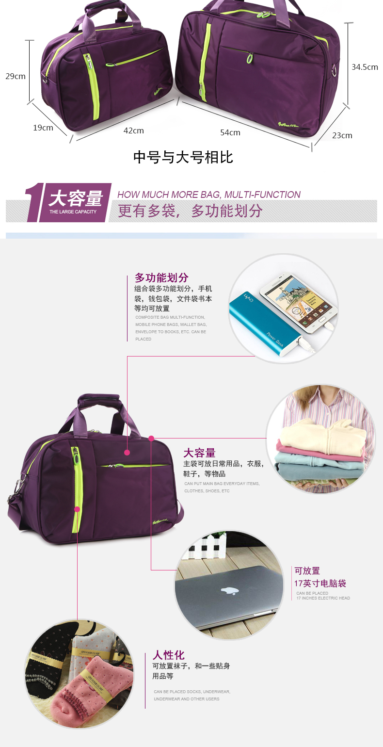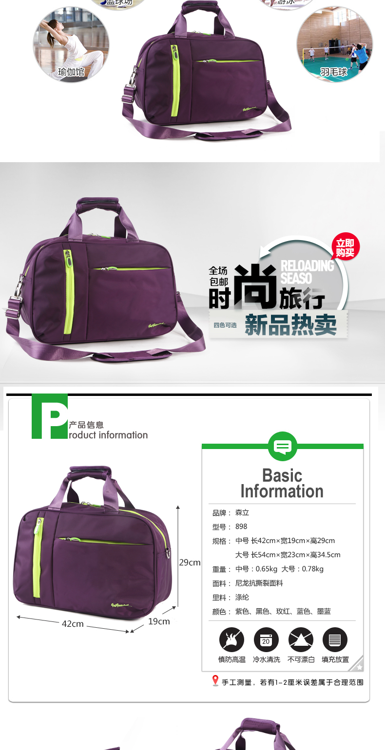森立大容量单肩短途旅行包