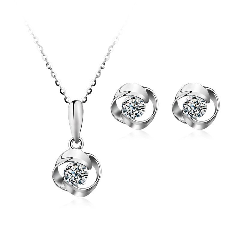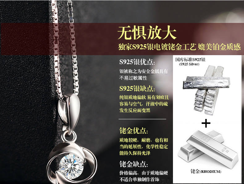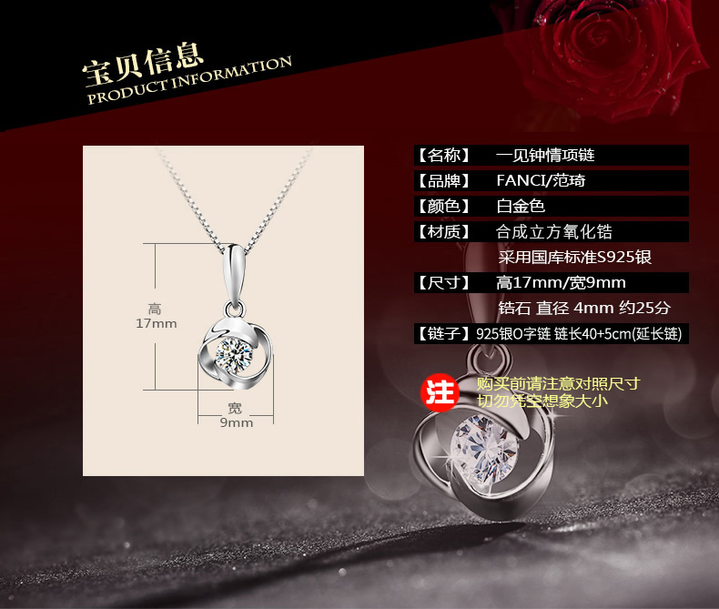 银项链耳钉情侣吊坠玫瑰花