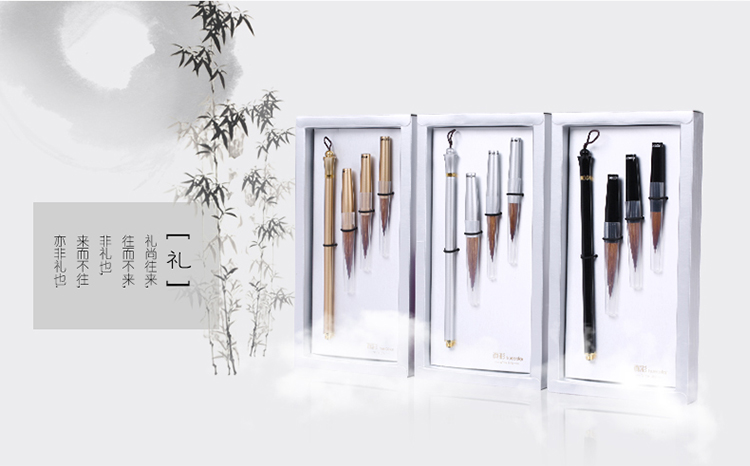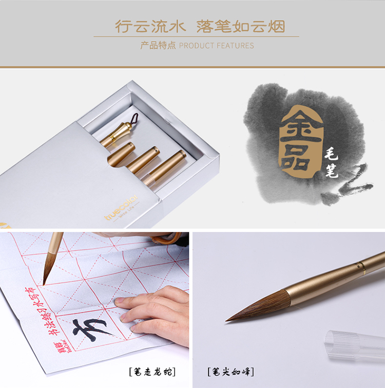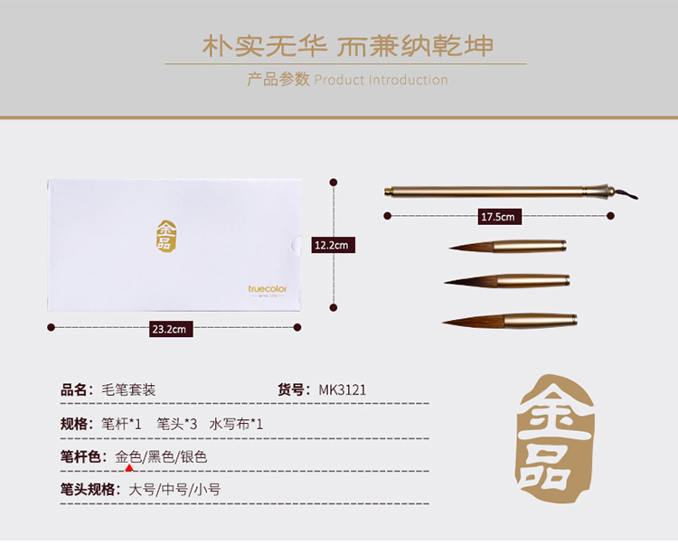 水写毛笔套装 笔头3支装(金色笔杆)MK3121