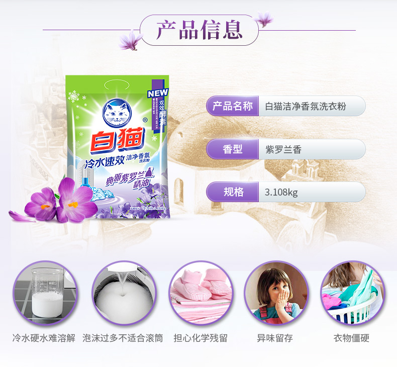 白猫冷水洁净香氛洗衣粉3.108kg x1